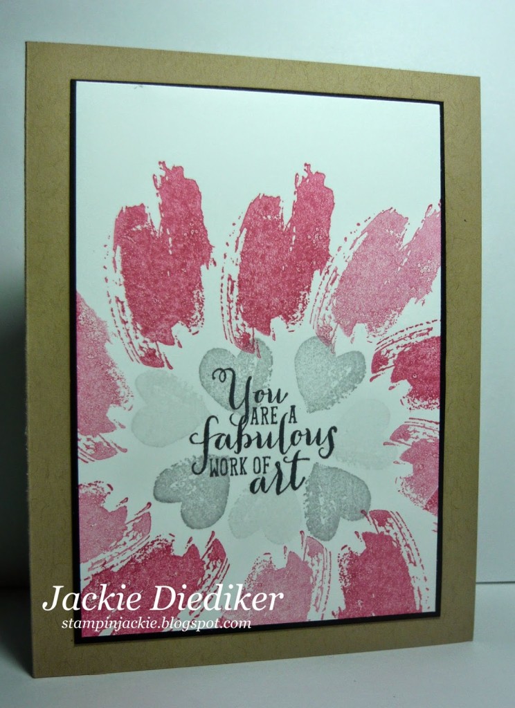 I have two more fun creations for you today, again featuring the Work of Art stamp set from the New Stampin’ Up! Catalog! My shipment of catalogs just arrived yesterday. If you need one please let me know! If your local I can bring it by or if you need a copy mailed to you we can talk about plans!