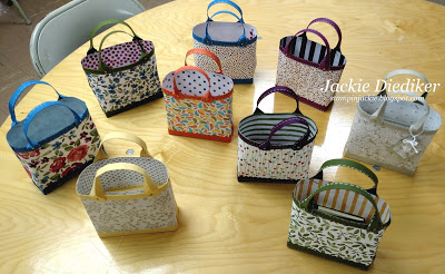 Here is a photo of all the amazing purses that were created last night at class! These ladies really rocked these purses! the fabulous Painted Blooms Designer Series Paper is on the Weekly Deals this week, be sure to snatch some up before it retires on the 3rd! This paper pack is my current favorite and has been since I have laid eyes on it, it won’t be carried over into the annual catalog, so hurry to the site and order, order, order!